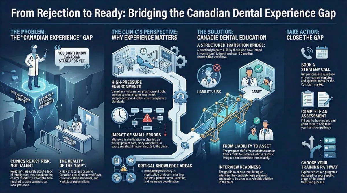 Specifically curated assistance to help Immigrant Dental Professionals adapt to the Canadian work culture and practice.